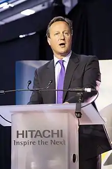 David Cameron /ˈdeɪvɪd ˈkæmɹən/[1], baron Cameron de Chipping Norton, né le à Marylebone (Londres), est un homme d'État britannique. Membre du Parti conservateur, il est Premier ministre du Royaume-Uni du au et secrétaire d'État aux Affaires étrangères, du Commonwealth et du Développement depuis le .