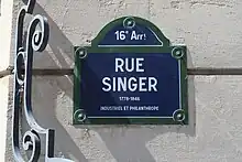 - Rue Singer, 16e arrondissement de Paris