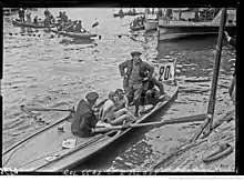 Billington en septembre 1909, attendant le départ de la traversée de Paris à la nage. | |