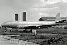 - Un Comet 1A amélioré est proposé avec une capacité d'emport supérieure, une capacité en carburant accrue[76] et une injection d'eau-méthanol ; dix sont construits. Dans le sillage des accidents de 1954, tous les Comet 1 et 1A sont retournés à Hatfield, initialement placés dans un cocon protecteur et conservés pour les essais[147]. Tous sont considérablement endommagés par les essais de fatigue ou sont entièrement mis au rebut[148].