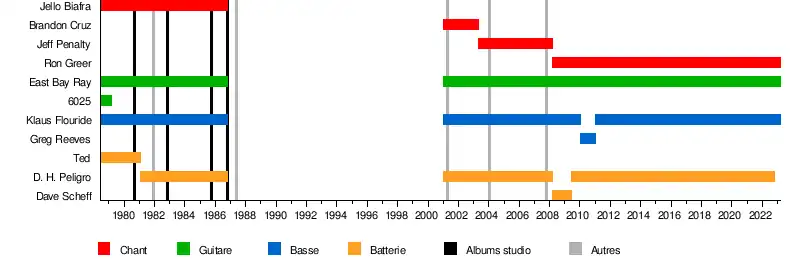 - D.H. Peligro – batterie, chœurs (1981–1986, 2001–2008, 2009–2022)