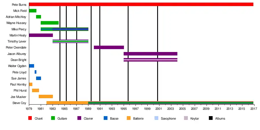 - Pete Burns - chant, compositeur, paroles (1980-2011, décédé en 2016)