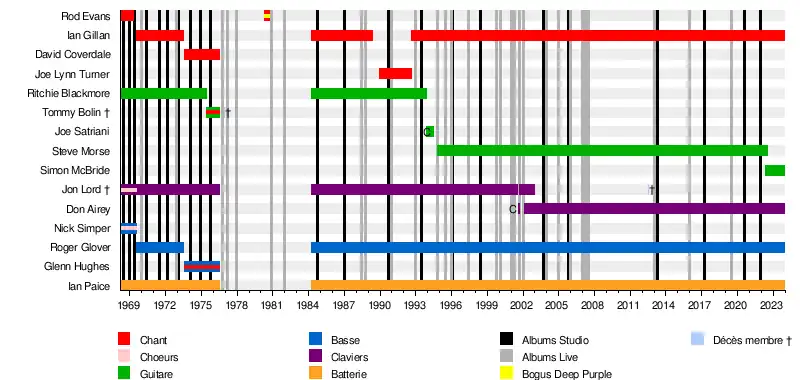 Depuis le départ de Jon Lord en 2002, Ian Paice est le seul membre d'origine encore présent au sein du groupe et le seul à avoir appartenu à toutes ses formations.