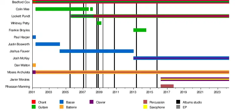 Le groupe est concentré autour de la personnalité tourmentée du chanteur-guitariste Bradford Cox, avec qui Moses Archuleta (batterie, claviers) l'a cofondé. Il est également composé de Colin Mee et Lockett Pundt (guitares), ainsi que Josh Fauver (basse).