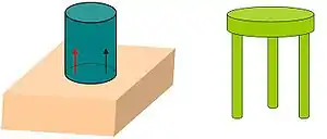 Par exemple, un tabouret à trois pied peut toujours trouver son assise au sol, contrairement à une chaise à 4 pattes qui se retrouve souvent bancale ; parce qu'un des pieds est superflu, il y a nécessité de « réglage » pour assurer les 4 points de contact. 4 pieds = 4 degrés de liaison 4 > 3 (degrés de liaison pour un appui plan)