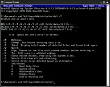del (ou erase) est une commande DOS présente dans tous les interpréteurs DOS, OS/2 et Microsoft Windows comme COMMAND.COM, cmd.exe, 4DOS, NDOS, 4OS2, 4NT et Windows PowerShell. Elle est l'équivalent de rm sous UNIX