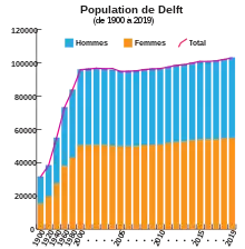 La population de Delft a plus que triplé au XXe siècle. Depuis la fin des années 1990, la stagnation est cependant évidente, ce qui a conduit à un premier déclin de la population en 2003, qui s'est intensifié les années suivantes, mais a été marqué par de légères reprises en 2004 et 2007. Depuis la population croit de façon stable.