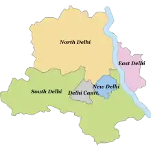 De 2012 à 2022, la corporation municipale de Delhi était divisée en trois corporations municipales : Delhi Est, Delhi Nord et Delhi Sud.