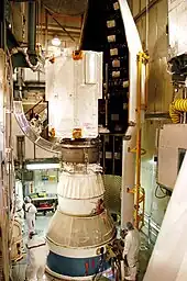 Le deuxième étage en cours d'assemblage avec le premier étage.