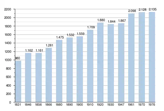 - Sources : INS, Rem. : 1831 jusqu'en 1970 = recensements, 1976 = nombre d'habitants au 31 décembre[2].