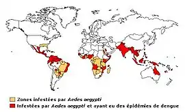 Avant 1970, seuls 9 pays avaient connu des épidémies de dengue sévère. Selon les chiffres 2018 de l'Organisation mondiale de la santé (OMS), la dengue serait l'arbovirose la plus répandue au monde, avec environ 3,9 milliards de personnes dans 138 pays exposées au risque d'infection par les virus de la dengue. Les régions de l'OMS les plus touchées sont les Amériques, l'Asie du Sud-Est et le Pacifique Occidental.