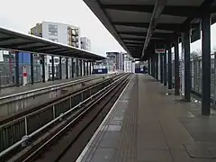 La station dispose de deux voies encadrées par deux quais latéraux[2].
