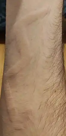Il s'agit en fait d'une forme particulière d'urticaire : les « urticaires physiques »[1], c'est-à-dire les urticaires dont le facteur déclenchant est un facteur physique (le froid, l'exposition solaire, la pression cutanée).