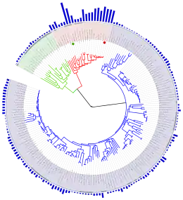 Des études minoritaires concluaient différemment, en considérant que les néomures (le clade incluant les archées et les eucaryotes) prennent naissance parmi les bactéries (qui formeraient alors un groupe paraphylétique)[18],[19], soit dans l’embranchement des Firmicutes[20], soit que l'embranchement des Chloroflexi serait le groupe frère d'un clade regroupant les Archées, les Eukaryotes, et le reste des Bactéries, comme proposé par Thomas Cavalier-Smith[21]. Selon d'autres auteurs, LUCA aurait été eucaryote, et aurait ensuite donné naissance à une lignée de bactéries et d'archées par simplification évolutive[22],[23].