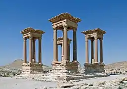 En , la reprise de Palmyre par les forces du régime syrien confirme que les quatre tétrapyles de Palmyre ainsi que la porte monumentale du front de scène du théâtre romain ont été endommagés à l'explosif[22].