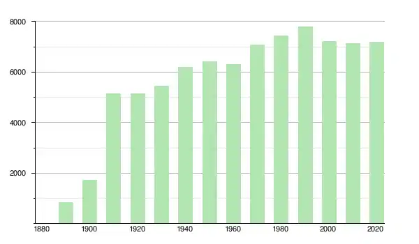 | 1960 | 6 299 | ▼ −1,99 % | |