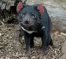 Le diable de Tasmanie[1] (Sarcophilus harrisii) est une espèce de marsupiaux carnivores ne vivant qu'en Tasmanie, au sud de l'Australie. Disparu du « continent » australien environ 400 ans avant l’arrivée des premiers colons européens en 1788, il a longtemps été considéré comme une menace pour le bétail et a été chassé impitoyablement jusqu’à ce qu’il devienne une espèce protégée à partir de 1941. Depuis les années 1990, un grand nombre de représentants de l’espèce sont victimes d’une tumeur faciale transmissible par morsure, qui réduit fortement sa population[2].