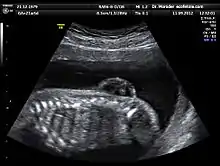 L’échographie est la principale et la plus courante des méthodes de diagnostic prénatal. En France, il est ainsi obligatoire de pratiquer trois examens échographiques[7], à 12, 21, puis 33 semaines d’aménorrhée.