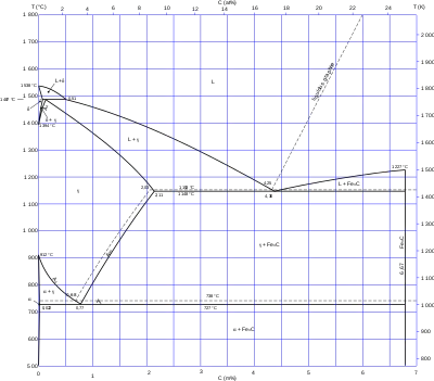 - pour les différentes phases solides, on peut reconnaître les différentes phases cristallines par diffraction de rayons X ; on peut faire l'analyse sur l'échantillon chaud, ou tremper l'échantillon, c'est-à-dire lui faire subir un refroidissement rapide afin qu'il conserve sa structure d'équilibre à chaud même lorsqu'il est froid (il n'est donc pas à l'équilibre).
