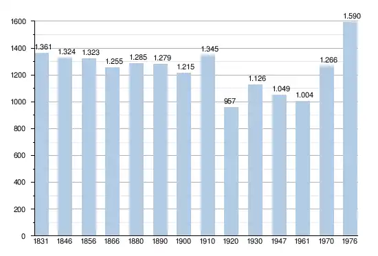 • Sources : INS, Rem. : 1831 jusqu'en 1970 = recensements, 1976 = nombre d'habitants au 31 décembre[2].