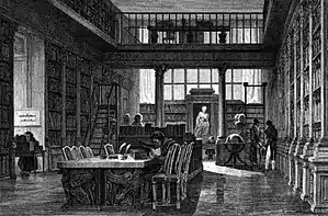 Bibliothèque de l'Institut de France, dessiné et gravé par Augustin François Lemaître, Dictionnaire de l'Académie française (1835).