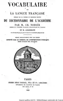 Vocabulaire de la langue française; par Charles Nodier et Paul Ackermann, Paris, 1868.