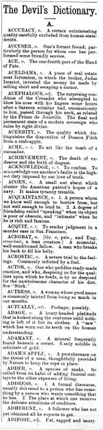 - Ambrose Bierce (trad. Bernard Sallé), Le Dictionnaire du diable, Rivages, (ISBN 2-86930-294-0)