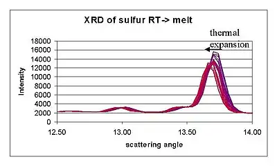 À un certain ensemble de condition, par exemple 0 °C pour une eau à 1 atm, un nouvel arrangement d'atomes ou de molécules peut devenir stable, amenant à une transition de phase. À ce stade, de nouveaux pics de diffraction apparaissent et certains anciens disparaissent en fonction de la symétrie de la nouvelle phase. Si le matériau fond vers un liquide isotrope, toutes les lignes nettes vont disparaître et être remplacé par un large motif amorphe. Si la transition produit une autre phase cristalline, un ensemble de lignes va soudainement être remplacé par un autre ensemble. Dans certains cas, toutefois, les lignes seront divisées, par exemple, si le matériau subit une transition de phase du second ordre continu. Dans ce cas, la symétrie peut changer parce que la structure existante est déformée plutôt que remplacé par un autre totalement différent. Par exemple, les pics de diffraction pour les plans de treillis (100) et (001) se trouvent à deux valeurs différentes de q pour une phase tétragonale, mais si la symétrie devient cubique, les deux pics viennent à coïncider.