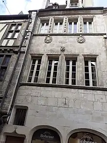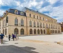 ![]() ![]() ![]() ![]() ![]() ![]() ![]() ![]() De haut en bas, de gauche à droite : palais des ducs et des États de Bourgogne, panorama du centre historique vu depuis la cathédrale Saint-Bénigne, l'oculus de l'auditorium de Dijon, la porte Guillaume, les tuiles vernissées de l'hôtel Aubriot, le centre commercial de la Toison d'or et le jardin Darcy. |