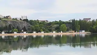 - L'Ouche venant du nord a un débit moyen de 10 à 20 m3/s pouvant dépasser les 100 m3/s en période de crue. Il peut alors se produire des inondations, mais elles sont rares et localisées. Un lac artificiel, le lac Kir, a été aménagé en 1964 sur son cours à l'entrée de la ville. Deux autres plans d'eau, bien moins importants, existent dans l'agglomération : l'étang royal, situé sur la commune de Longvic, et l'étang de la Leue, à Neuilly-les-Dijon, tous deux à proximité immédiate du cours de l'Ouche.