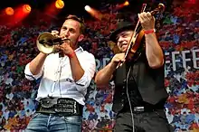 Szymon Bobrowski à la trompette et Andrzej « Fiś » Jarząbek au violon, en 2015 au Bardentreffen de Nuremberg.