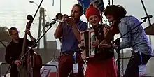 Sur scène en 2017. De gauche à droite : Grzegorz Kolbrecki (à la contrebasse), Szymon Bobrowski (à la trompette), Anna Witczak-Czerniawska (à l'accordéon) et Dominik Bieńczycki (au violon).