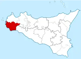 région ecclésiastique de Sicile avec le diocèse de Mazara del Vallo en rouge (avec l'île de Pantelleria)