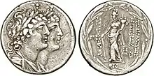 L'apparition des dioscures, ou de jumeaux, en particulier pour décider l'issue d'une bataille, est une « dioscurophanie »[55]. Les premières mentionnées dans l'Antiquité sont celles de la bataille de la Sagra (), de la bataille du lac Régille () et de la bataille de Pydna (). À l'époque médiévale, cette apparition aurait eu lieu lors de la bataille de Simancas. L'historien Adolf Furtwängler (1853-1907) a ainsi dressé la liste de toutes les batailles où des dioscures sont apparus[55].