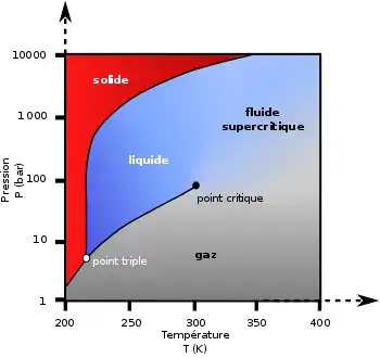 | Point critique | 31,3 °C ; 72,9 atm et 0,464 g cm−3[3] |