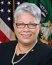 Stella Hackel Sims entre en fonction en , à la suite de sa nomination par le président Jimmy Carter, et occupe le poste jusqu'en ). Avant cela, elle était trésorière de l'État du Vermont[2],[46].