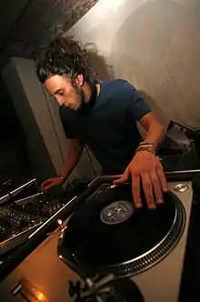 Un disc jockey (/diskʒɔkɛ/, en anglais : [dɪsk dʒɒki]), également orthographié disc-jockey, couramment épelé DJ ([diː ˈdʒeɪ])[1],[alpha 1] ou deejay[1], aussi appelé platiniste en français[2], est un animateur du son qui sélectionne, diffuse et mixe de la musique à destination d'un public, que ce soit pour une émission radiophonique, dans une discothèque ou à l'occasion d'un événement spécifique.