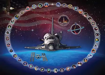 Le Space Transportation System (STS)[4] qui peut se traduire par système de transport spatial est le nom officiel pour désigner tout le programme Shuttle. Le Space Shuttle est utilisé pour désigner une navette.