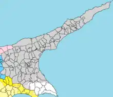 En 1974, à la suite de l'invasion de l'armée turque certains des districts chypriotes ont échappé (soit en partie, soit en totalité) au contrôle du gouvernement central hellénophone. Ce fut alors le cas pour une grande partie du District de Famagouste qui tomba sous la coupe de l'armée d'Ankara, à l'exception de plusieurs communes au sud de celui-ci qui restèrent sous le contrôle du gouvernement central chypriote.