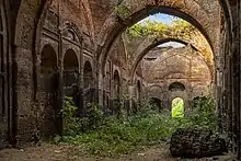 L'intérieur de la mosquée en ruine de Fauti ou Phuti, dans le district de Murshidabad. Elle a été construite en 1740. Photo de novembre 2018.