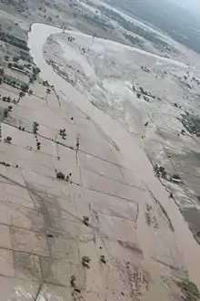 Le district de Muzaffargarh est situé entre la rivière Chenab à l'est et le fleuve Indus à l'ouest[1]. L'Indus est rejoint par son affluent la Chenab au sud du district. Cette géographie aggrave les risques d’inondations. Ainsi, lors des inondations de 2010 au Pakistan, qui ont été très destructrices et meurtrières, le district a été plus particulièrement touché.