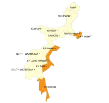 Les régions tribales étaient divisées en sept « agences », devenues des districts dans le cadre de leur fusion avec la province de Khyber Pakhtunkhwa en 2018.