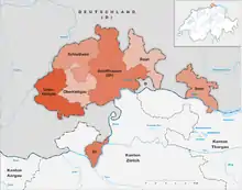 Le canton de Schaffhouse a abandonné la division en districts en 1999[1]. Toutefois, ils sont toujours utilisés à des fins statistiques[2]. Tous ont l'allemand pour langue officielle.