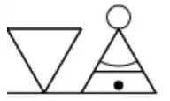 Le sommet du triangle ou du chevron correspond à l'ouverture ou au degré d'antériorité de la voyelle, avec les voyelles fermées /i/ et /u/ pointant vers le haut et la voyelle ouverte /a/ pointant vers le bas. De même, les voyelles antérieures /ɛ/ et /e/ pointent vers la gauche et les voyelles postérieures /ɔ/ et /o/ pointent vers la droite.