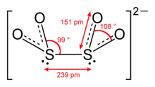 L'anion dithionite (DT) est un oxyanion de soufre de formule S2O42−[1] dérivant de l'hypothétique acide dithioneux H2S2O4.