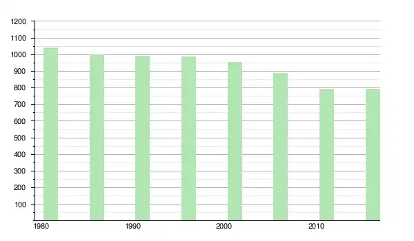 Il y avait 955 habitants en 2001, comparativement à 986 en 1996, soit une baisse de 3,1 %. Le village compte 417 logements privés, a une superficie de 28,74 km2 et une densité de la population de 33,2 habitants au km²[14].