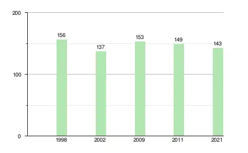 En 2021, le village de Dobrylewo comptait 143 habitants, en diminution de −8,33 % par rapport à 1998[6]. En 2021, 54,5 % des habitants du village de Dobrylewo étaient en âge de travailler (entre 18 et 64 ans pour les hommes et 18 et 59 ans pour les femmes). 23,8 % des habitants avaient moins de 18 ans et 21,7 % avaient l'âge légal de la retraite. Les personnes en âge de travailler représentaient 59,5 % de la population de la voïvodie de Couïavie-Poméranie et 59,5 % de la population de Pologne. Ainsi, le taux de dépendance démographique du village de Dobrylewo est supérieur à celui de la voïvodie de Couïavie-Poméranie et supérieur à celui de la Pologne[7].