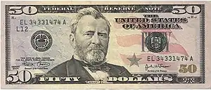 En 1861, les premiers billets verts apparaissent. La maxime « In God We Trust » (« Nous croyons en Dieu »[18] ou « Nous avons confiance en Dieu ») apparaît pour la première fois en 1864 sur la pièce de 2 cents. Approuvée en 1955 par un acte du Congrès, elle est depuis 1957 systématiquement imprimée sur tous les billets américains.