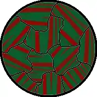 Ce qui précède décrit la structure des domaines magnétiques dans un réseau cristallin parfait, comme c’est le cas pour le monocristal de fer. Toutefois la plupart des matériaux magnétiques sont polycristallins : composés de grains cristallins microscopiques. Les domaines ne sont pas identiques pour tous les grains. Chaque cristal a un axe de facile aimantation et est divisé en domaines avec l'axe d'aimantation qui lui est parallèle, selon des directions alternatives.