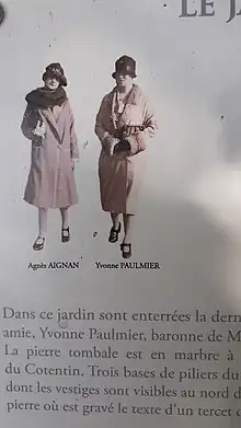 À l'arrière de l'ancienne grange, se situe le jardin Bleu[2]. C'est là que reposent ensemble Yvonne Paulmier, fille de Valentine Bouillant et Charles-Ernest Paulmier, baronne de Marcay, décédée en 1950 et sa compagne Agnès Aignan, dernière propriétaire de la baronnie, décédée en 1986[3].